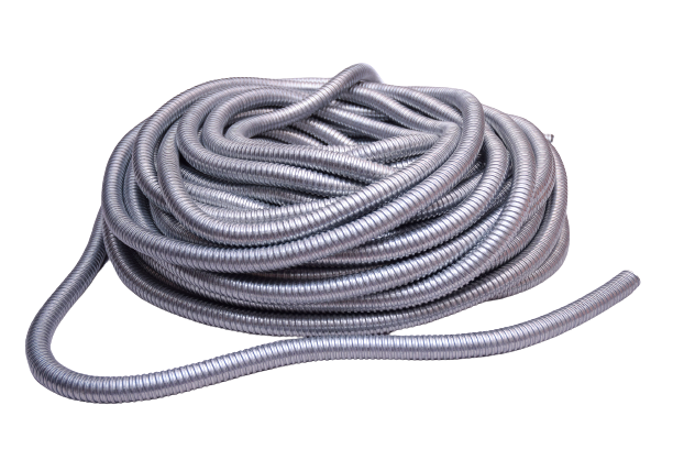 TUBO METÁLICO FLEXIBLE DE ACERO GALVANIZADO ENGARGOLADO DE FORMA HELICOIDAL.